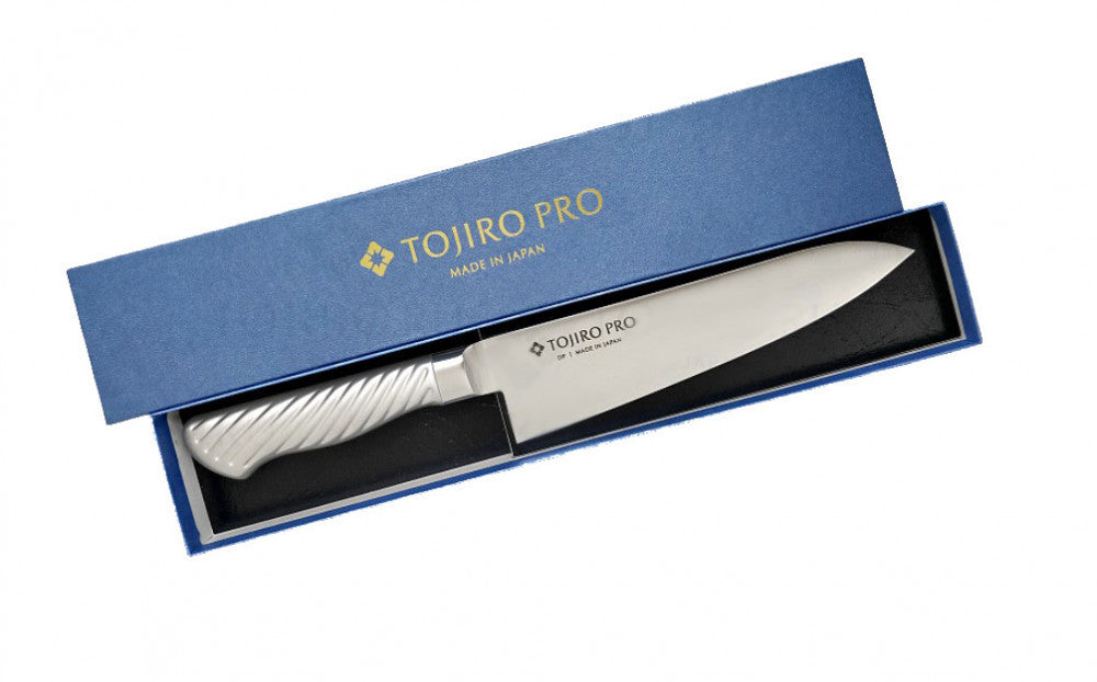 Tojiro Pro DP 3Layered Chef's Knife with 18 cm long blade, stainless steel handle.