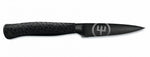 single piece of stainless X50CrMoV15 steel forged, laser-sharpened, 58 HRC blade, black DLC coating (104 HRC surface hardness)