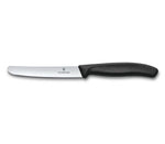 Victorinox tomato and breakfast knife with rounded tip, smooth edge and black handle.