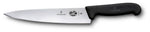 Victorinox Fibrox chef's knife with a straight edge, 22 cm blade and black plastic handle.