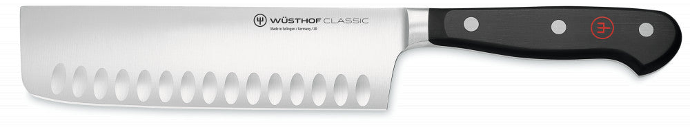 Wüsthof 4193D – Classic Nakiri Japanese chef's knife with a ribbed 17 cm blade and black handle, in a gift box.
