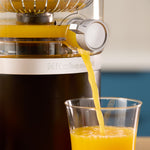 Ciocul de precizie este proiectat pentru a direcționa sucul direct în pahar, menținând blatul curat. După stoarcere, puteți bloca gura de scurgere pentru a transporta vasul în siguranță la masă sau la frigider.