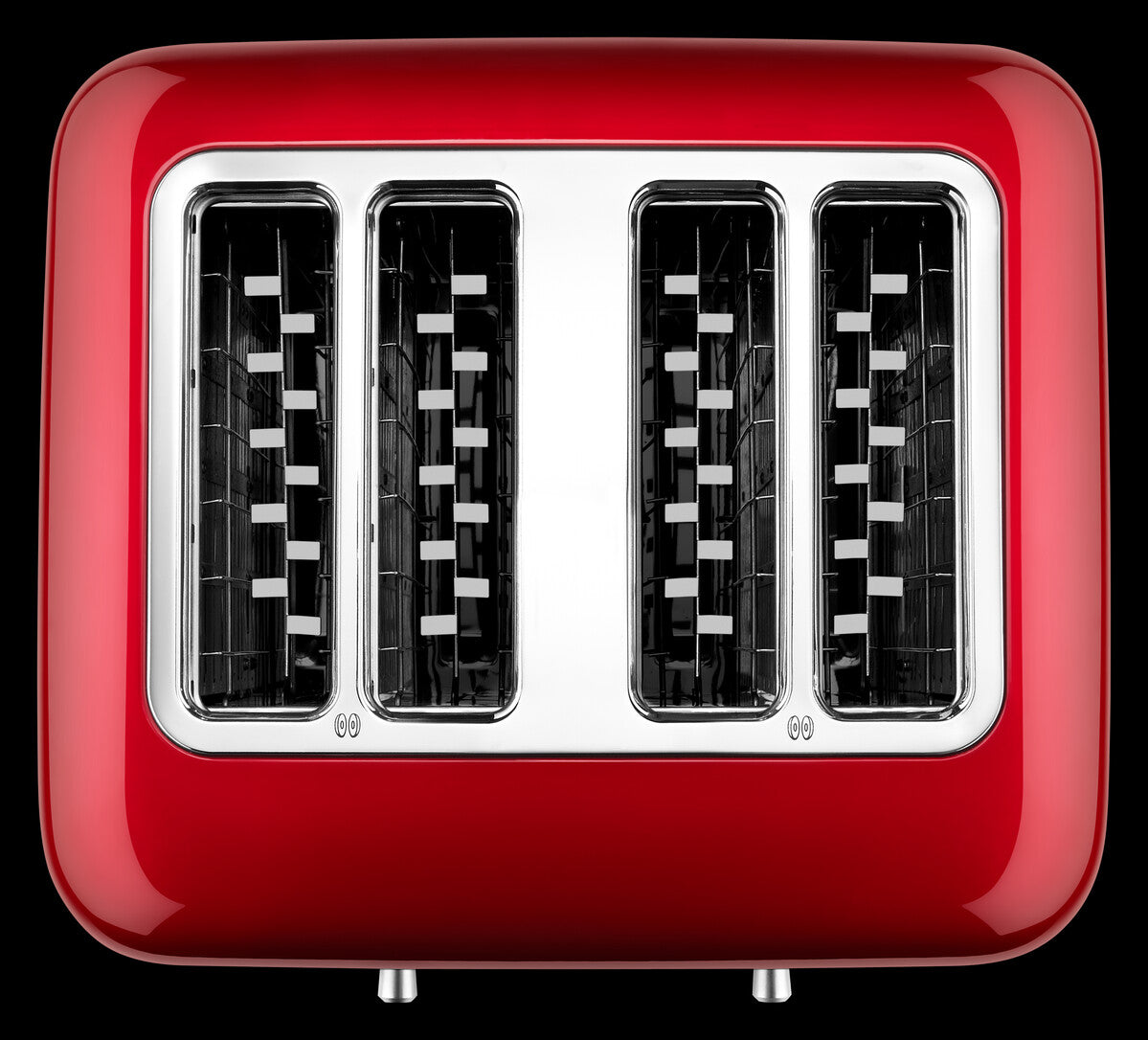 Mornings just got easier with this KitchenAid 4-slice toaster. It can cope with big breakfasts, big bread, and big appetites. It has 2 pairs of extra-wide slots, with independent controls. That means you can pop in just 2 slices without wasting any energy heating the other 2 empty slots. Or use all the slots, controlling 2 or 4 slices, to get your toast the perfect shade. The automatic self-centering racks make sure your bread toasts evenly, right up to the edges, every time.
