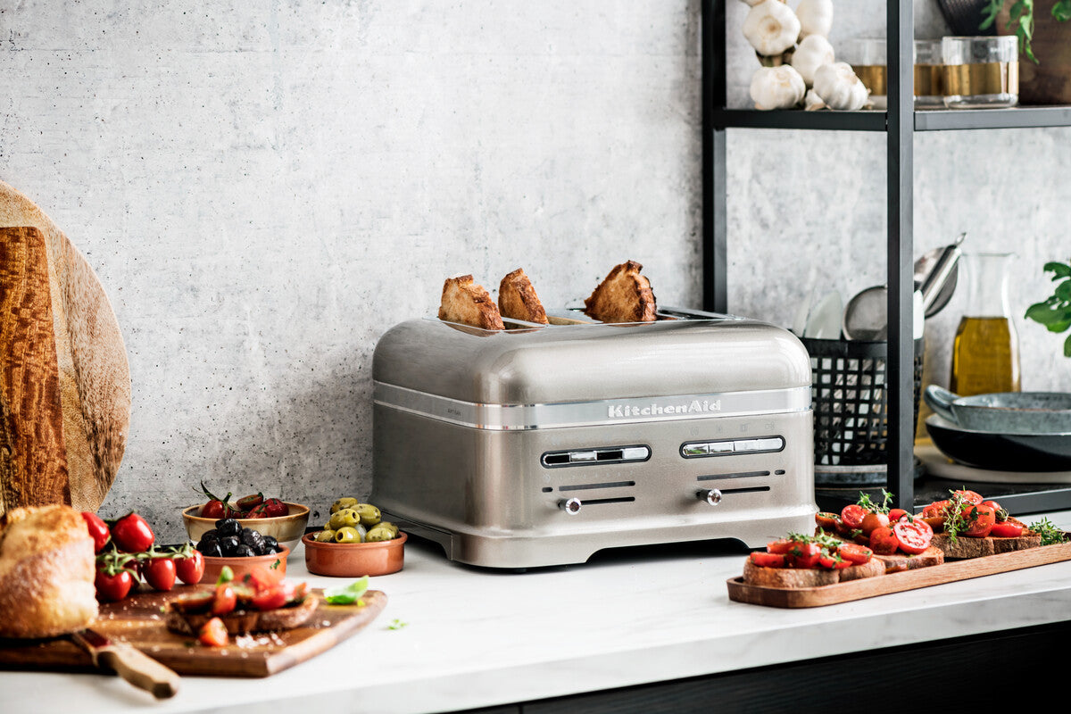When you have a busy morning, the smallest things can make a big difference. We've all done it: run off to feed the dog or sort the laundryn and forgotten about the toast. The KitchenAid Artisan toaster - 4 slice has a sensor which automatically lowers/lifts the toast and keeps it warm for up to 3 minutes if you don't take it out. It's just one less thing to think about whne mornings in the kitchen get hectic.
