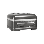 Mornings just got easier with this KitchenAid 4-slice toaster. It can cope with big breakfasts, big bread, and big appetites. It has 2 pairs of extra-wide slots, with independent controls. That means you can pop in just 2 slices without wasting any energy heating the other 2 empty slots. Or use all the slots, controlling 2 or 4 slices, to get your toast the perfect shade. The automatic self-centering racks make sure your bread toasts evenly, right up to the edges, every time.