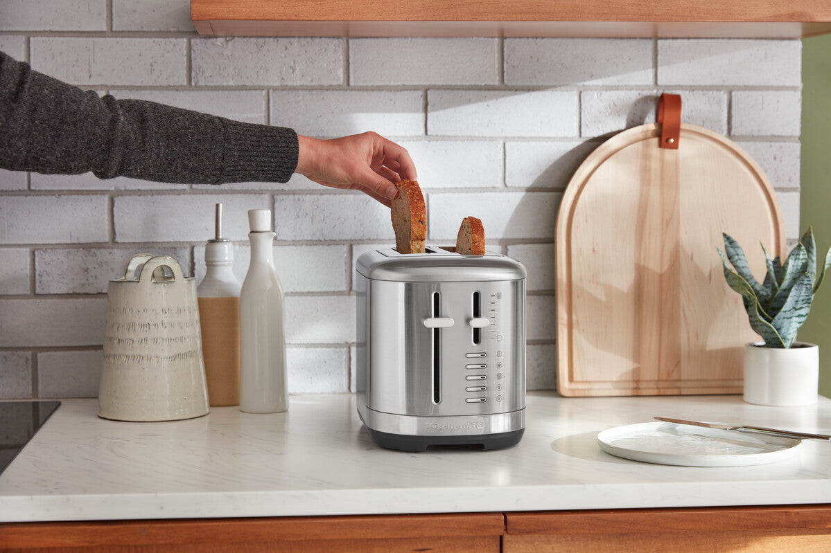 The KitchenAid toaster 2 slice is ideal for breakfast, lunch or late night munchies. It’s reliable, efficient, toasts any size bread, and has 5 shade settings to keep everyone happy. Enjoy toasted food your way with this no-hassle toaster.