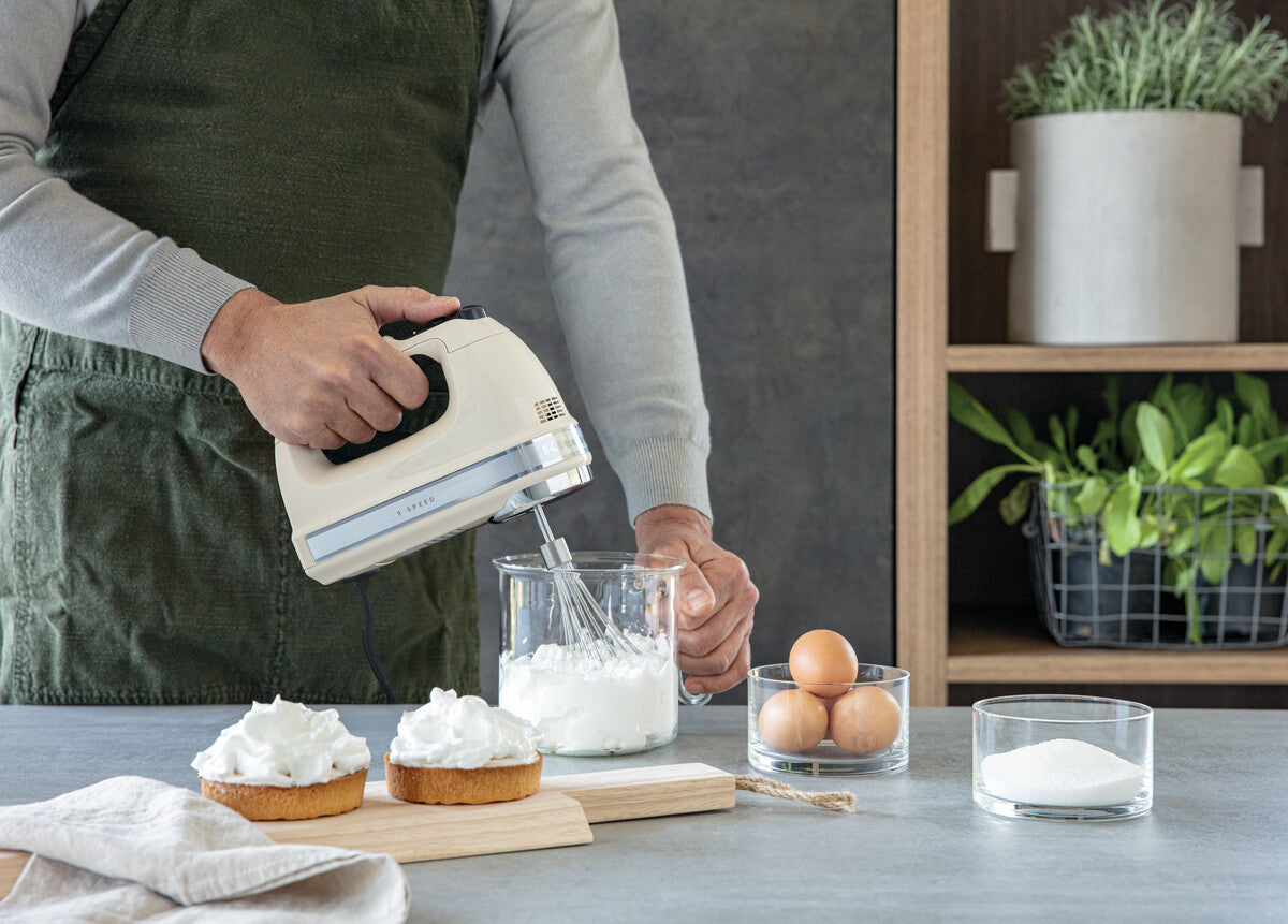 The KitchenAid 9 speed hand mixer 5KHM9212 may be small, but it gives big results. Designed by the #1 MIXER BRAND IN THE WORLD ⁽¹⁾ and as versatile as a stand mixer, it helps you make anything from delicious weekday dishes to elaborate menus for entertaining.
