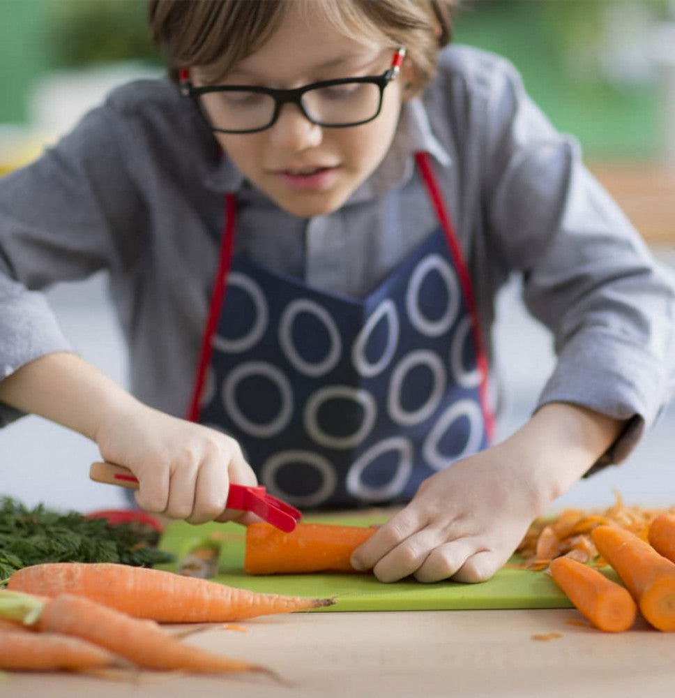 Le Petit Chef peeler is equipped with an educational ring which helps to position well fingers and to peel easily by pulling.