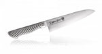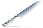 By forging steels with different nickel contents, an elegant ripple pattern is created, the density and uniformity of the super-hard steel is increased, and ultimately results in maximum sharpness. The handle is hygienic, completely made of stainless steel, with a "tornado pattern" that prevents wet or greasy hands from slipping.