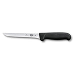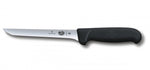 Victorinox Fibrox boning knife with a curved, 15 cm long blade and a black non-slip ergonomic plastic handle.