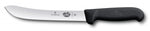 Victorinox Fibrox Pocket Knife with a straight edge, stiff, narrow, thick 20 cm blade and black plastic handle.