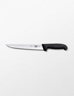 Victorinox Fibrox paring knife with a straight edge 25 cm long blade and black synthetic handle.