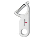 Victorinox Potato Peeler with pest remover, white handle.